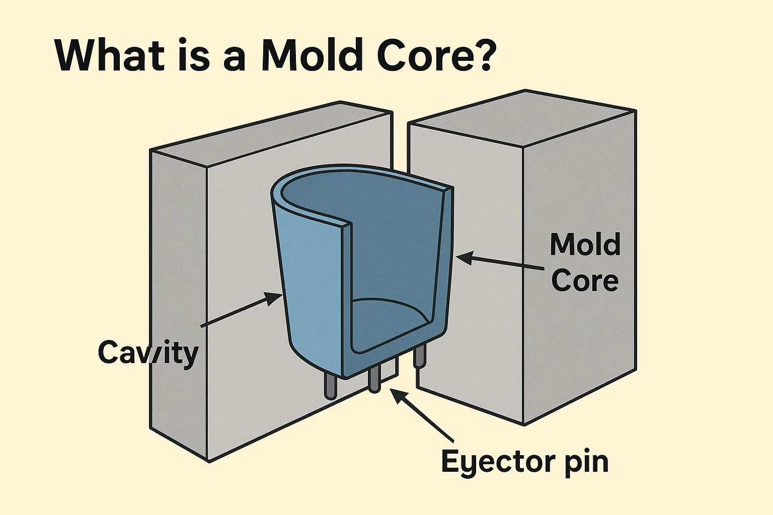Arasındaki ayrım kalıp çekirdeği ve kalıp boşluğu tüm enjeksiyon kalıplama işleminin temelini oluşturur. Tek bir aletin iki yarısı olsalar da, belirgin şekilde farklı ancak tamamlayıcı fonksiyonlar yaparlar. Kalıp boşluk formlar harici şekil dış boyutlarını ve kozmetik yüzeyini tanımlayan parçanın. Aksine, kalıp çekirdek yaratır iç şekil ve özellikler ve ayrıca parça çıkarma işlemini kolaylaştırmanın kritik rolünü de oynar.