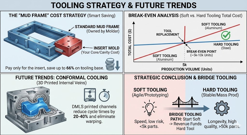 - Sert Takımlama Reality: Çelik ısıyı daha uzun süre tutar. Sert takımlamayla hızlı çevrim sürelerine ulaşmak için karmaşık, delinmiş dahili soğutma kanallarına ("uyumlu soğutma") sıklıkla ihtiyaç duyulur ve bu da takımlama maliyetlerini daha da artırır.