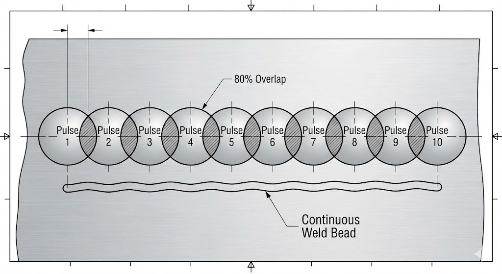 - Sürekli/Örtüşmeli Kaynak: Teknisyenler her "noktayı" üst üste bindirerek %70-80 kesintisiz, sağlam bir metal boncuk oluşturmak için.