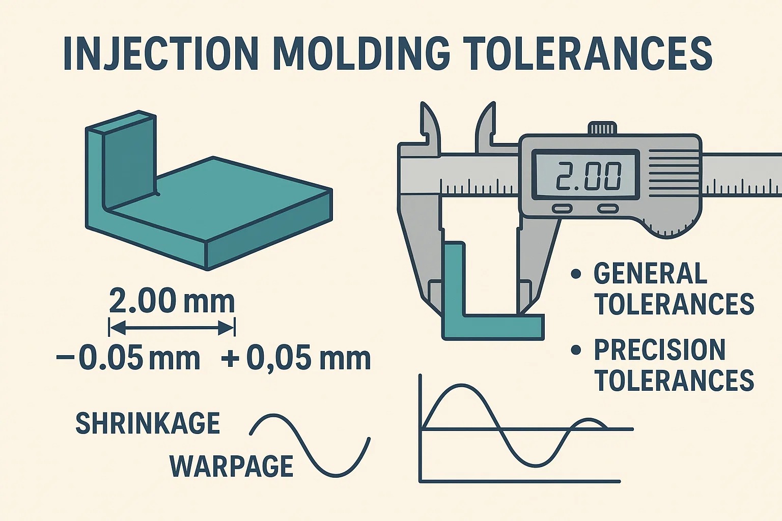 Enjeksiyon kalıplamada hassasiyete ulaşmak bir dengeleme eylemidir. Takım yolunun nihai boyutu belirlediği işlemenin aksine kalıplama, doğası gereği hareket ve değişkenlik sağlayan bir faz değişimini (sıvıdan katıya) içerir.
